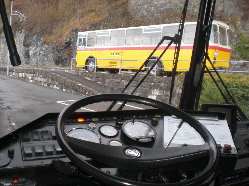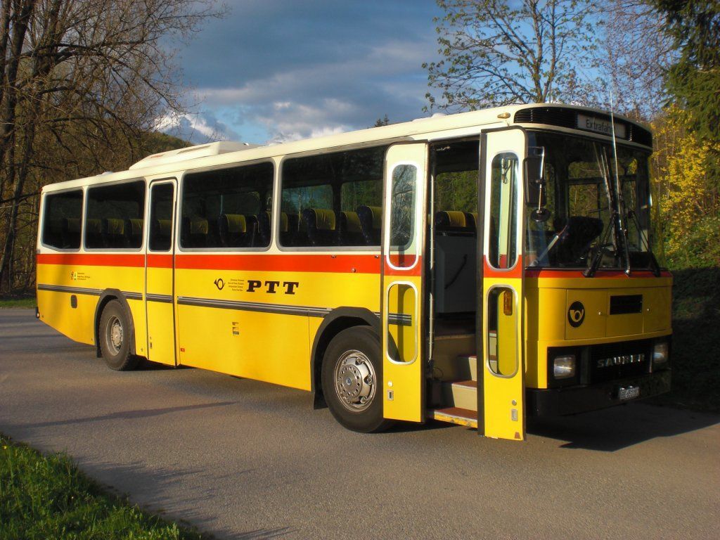 Als Rolls-Royce der Alpenpost wurde das Fahrzeug 1979 in Betrieb gesetzt. Man sagt, dass sein Fahrkomfort bis heute unerreicht sei. Dank Luftfederung und Einzelradaufhängung haben sie das Gefühl, über die Strasse zu gleiten. Mit seinen 2.30 Metern Breite kann er zudem so manche Strasse befahren, die für heutige Reisebusse nicht mehr passierbar sind. Eine Raumklima-Anlage, verstellbare Einzelsitze und Becherhalter sorgen dafür, dass Sie sich an Bord so richtig wohl fühlen - und das originale Dreiklanghorn für viele staunende Passanten, die Zuwinken und unsere Passagiere beneiden.